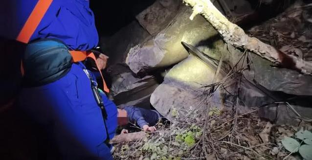 山上黑得伸手不见五指,气温低得让人直哆嗦。队员们分成两组,赶紧往山上爬。凌晨3点11分,靠近山顶的时候,他们隐约听到几声微弱的呻吟。顺着声音找过去,队员们借着头灯一看,吓了一跳:一个男人趴在地上,身子被一块大石头死死压住,只有脑袋露在外面,动都动不了。