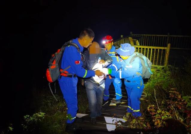 救援队员一边救人,一边问他身体怎么样。男人虽然伤了,但意识还算清楚。队员们赶紧给他水和食物,稳住他的状况。凌晨3点35分,他们搀着男人下了山,终于跟焦急等待的家属碰头,把人安全交到他们手上。